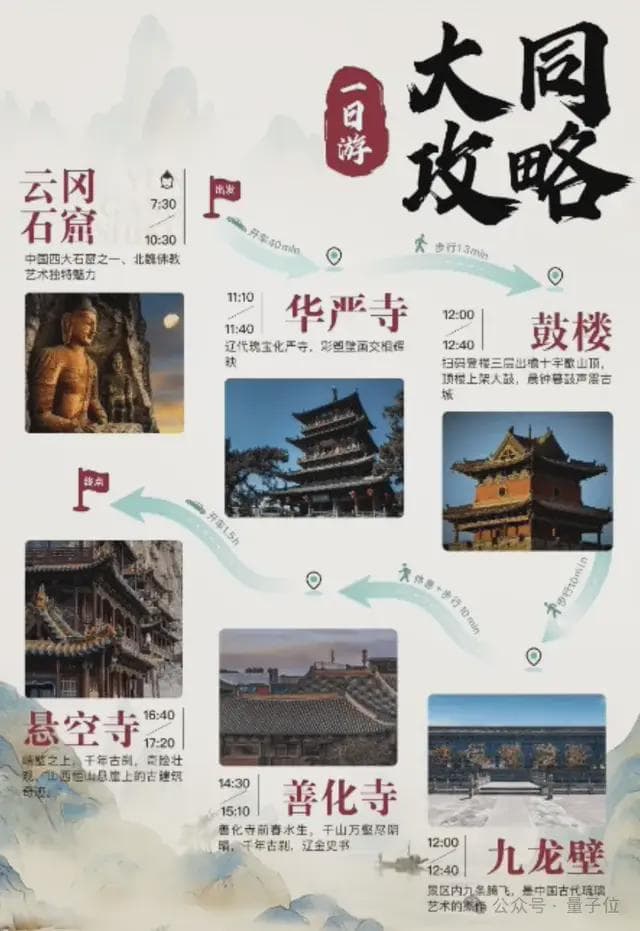 这份大同一日游攻略不仅秒秒钟生成了,而且竟然是以海报的形式。