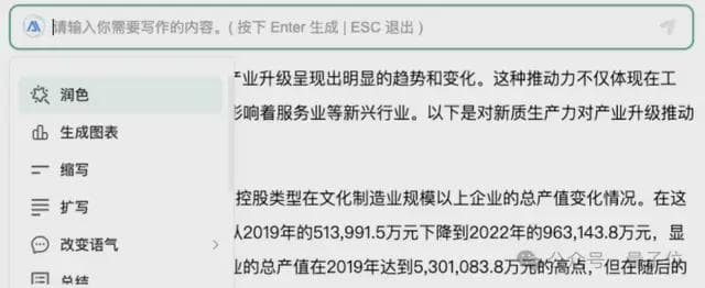既不用像WPS、Office等编辑器似的不同格式需要放在不同的编辑器处理,降低了使用门槛;又相比此前AI编辑器更能精准创作出用户想要的内容,用户无需切换好几个平台用不同AI做不同任务。