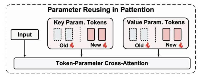 Tokenformer 的核心创新是 Token-Parameter Attention(Pattention) Layer,它结合了一组 Trainable Tokens 作为 model parameters,并通过 cross-attention 来管理 Input Token 与这些 Parameter Tokens 之间的交互。