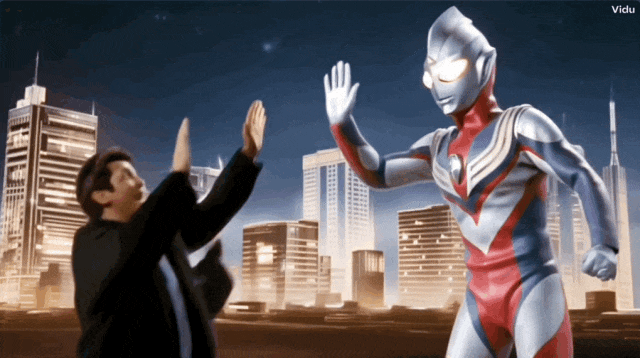 首先是多主体交互,用户可以上传多个自定义角色,让它们在指定空间内进行交互。何不试试让AI界奥特曼和光之巨人迪伽奥特曼同框出镜?