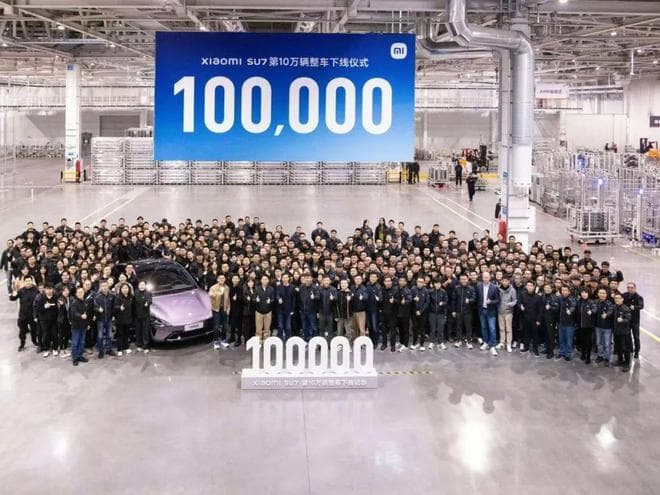 小米汽车也在官方微博发文称:"今天,小米SU7第100000辆正式下线!仅用230天,创造新车企10万辆最快下线纪录。雷军在小米汽车工厂共同见证了这一时刻。小米汽车工厂将持续扩充产能,目标年底交付12万辆。"