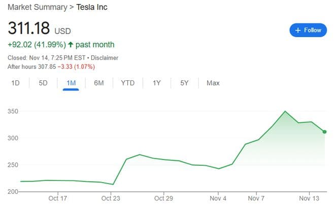自特朗普当选以来以来,特斯拉的市值增加了3000亿美元,这一数字超过了福特、通用汽车和 Stellantis 的总市值。