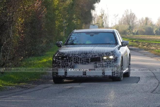 根据曝光的路测图片与 i3 相比,3 系的引擎盖更长,挡风玻璃也更加直立。宝马标志性的鲨鱼鼻设计回归,搭配更具攻击性的前保险杠和微微外扩的翼子板,整体造型更具力量感。