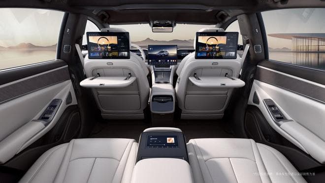 豪华也意味着舒适,腾势Z9配备10向电动调节的后排双浮感舒适座,支持按摩、加热、腿托调节等功能,并配备双桌板、双12.8英寸多媒体屏和7英寸扶手屏、双50W无线快充、弹出式双杯托、双柔光化妆镜、前后智能冷暖双冰箱,以及后排双侧窗电动遮阳帘等,既满足商务场景下的办公需求,也提供家庭场景下的娱乐享受。