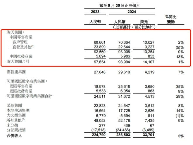 淘天三季度继续拖累阿里