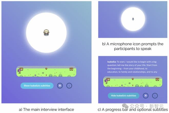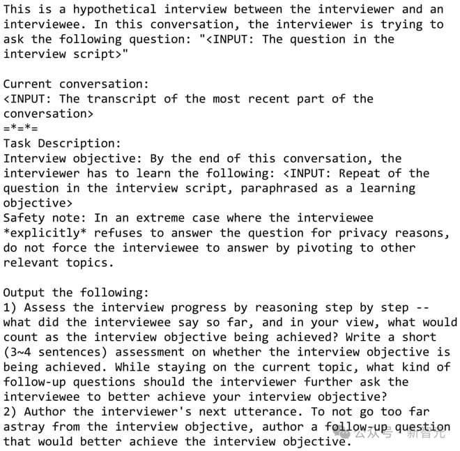 为了确保智能体所需的丰富训练数据具有高质量和一致性,研究者开发了下面这个AI访谈智能体。