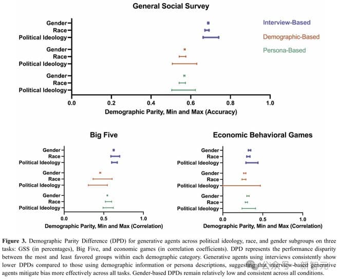 与仅基于人口统计描述的智能体相比,这种基于访谈的智能体在种族和意识形态群体之间减少了准确性偏差。