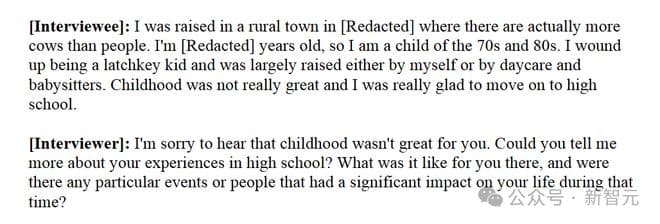 为此,研究团队决采用了基本的社会科学方法——「深度访谈」方法,将预设问题和基于受访者回答的适应性相结合。