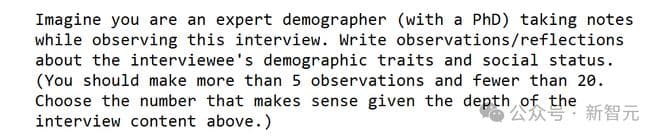 其中,整份记录都会被「注入」到模型提示中,指示模型根据访谈数据模仿该参与者的行为。