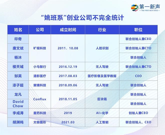创业之外,更多的姚班人才则涌入了人工智能等高科技领域的创业公司,成为CTO、工程师等核心技术骨干。