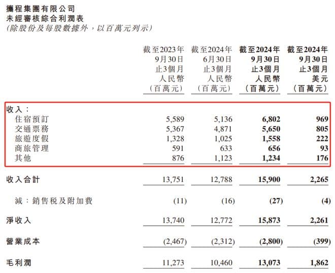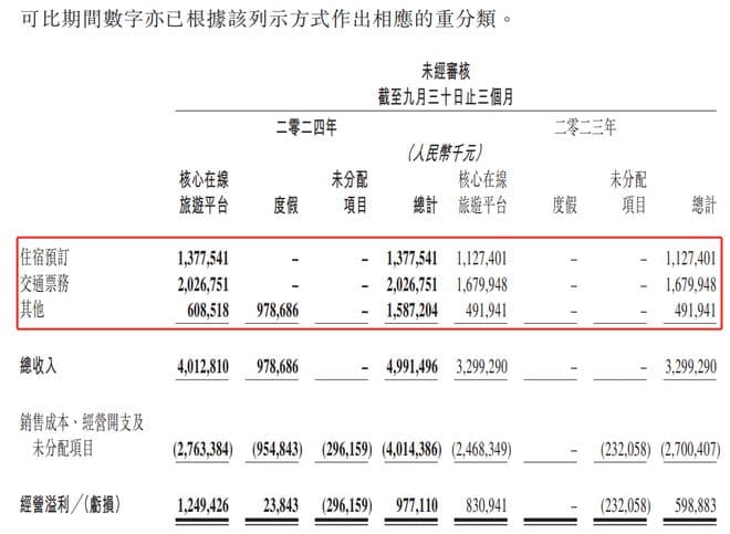 同程旅行三季度收入由2023年三季度的人民币32.99亿元同比增加51.3%至2024年第三季度的49.91亿元人民币,创下历史新高。