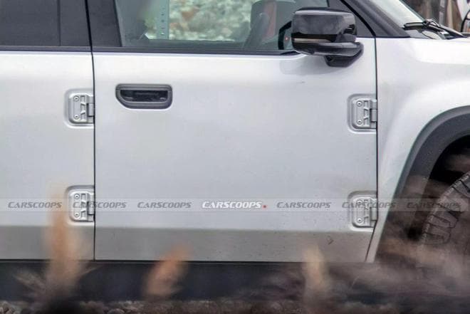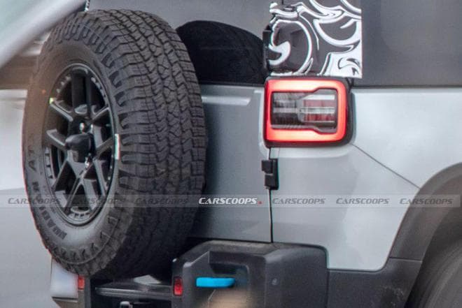 IT之家附上曝光的路测图如上,Recon 继承了 Jeep 标志性的硬派越野风格,包括可拆卸车门、外露铰链、亮蓝色拖钩,以及粗犷的 17 英寸 Nexen Roadian ATX 全地形轮胎和尾门上的全尺寸备胎,无不彰显其强大的越野实力。