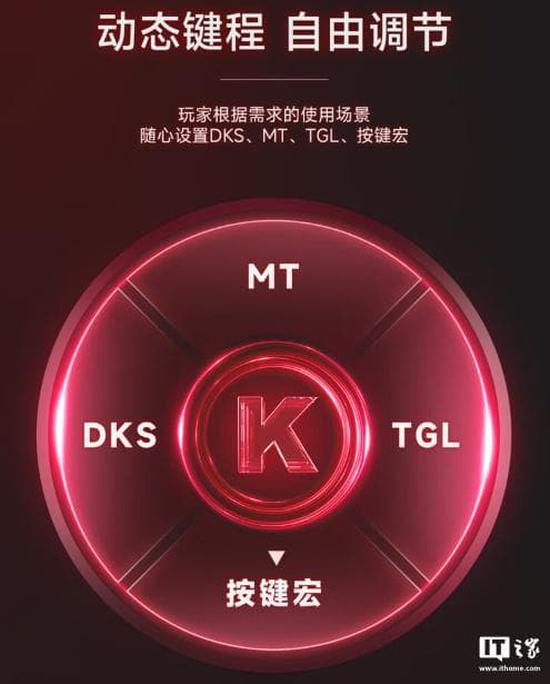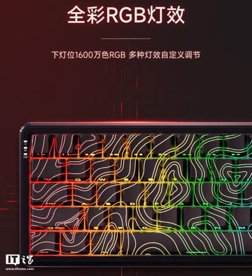 该款键盘支持动态键程自由调节,玩家可根据需求设置 DKS、MT、TGL、按键宏等功能,按键可按照最低 0.01mm 进行个性化设置(标准版为 0.1mm)。键盘还配备下灯位 1600 万色全彩 RGB 灯效。