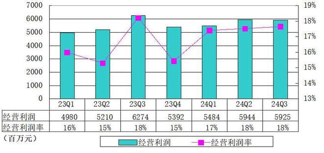 百度2024年第三季度经营利润为59亿元(8.44亿美元)。百度核心经营利润为57亿元(8.11亿美元),及百度核心经营利润率为21%。非公认会计准则下经营利润为70亿元(9.99亿美元)。非公认会计准则下百度核心经营利润为67亿元(9.48亿美元),及非公认会计准则下百度核心经营利润率为25%。