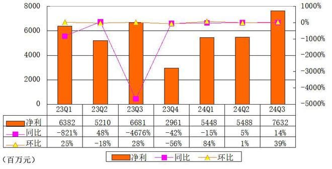 百度2024年第三季净利76亿元(10.9亿美元),较上年同期增长14%;归属百度核心的净利75亿元(10.7亿美元)及百度核心的净利润率为28%。