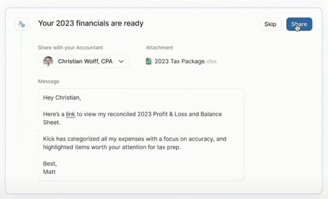 智能报告生成:自动生成现金流报表、损益表等财务报告,可一键分享给CPA(注册会计师)。