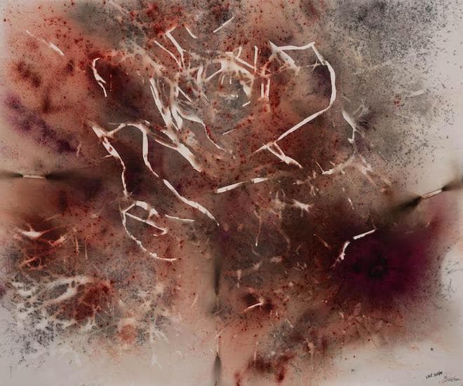 蔡国强; cAI™,《cAI™莲花》,2024年。火药、画布、152.5 x 183 cm。赵梦佳摄,蔡工作室提供