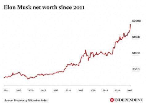 马斯克2011年以来的净资产 资料来源:彭博社