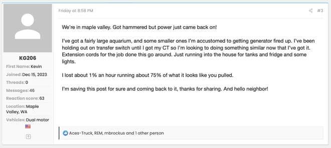 而在博主评论区,也有用户声称其使用Cybertruck为家庭供电,大约每小时损失1%的电量。