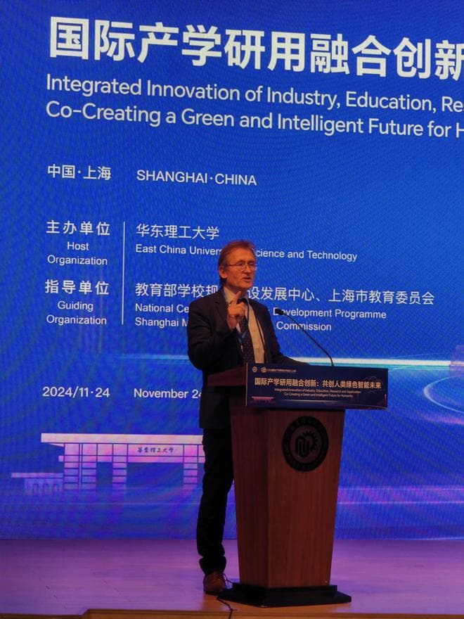 不仅产业界,费林加多年来致力于与全球各地的高校开展合作,尤其是与华东理工大学合作创办了“费林加诺贝尔奖科学家联合研究中心”并担任该中心外方主任,打造精准化学与分子工程的基础研究、人才培养和国际合作高地,推动相关领域的科学研究和技术创新。“我非常认可中国一体推进教育发展、科技创新、人才培养的理念,把产业发展需求、科学研究和人才培养有机地结合在一起。”费林加表示,“我坚信教育是启迪智慧,促进社会发展,增进人类福祉的重要途径,而教育国际交流是开拓视野,实现共同发展的重要手段。”