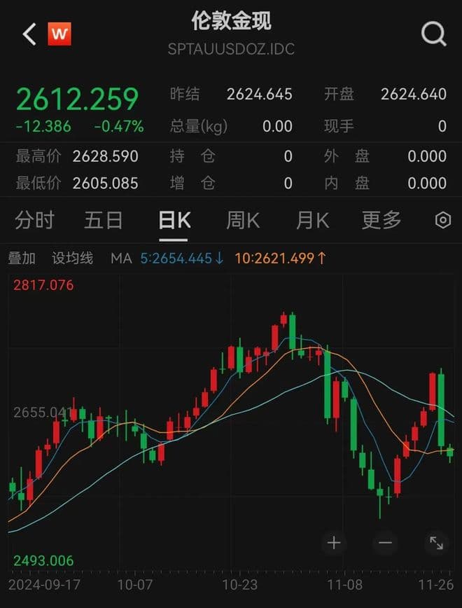 黎以冲突接近尾声,避险资金纷纷离场。除了加密货币市场外,隔夜黄金、原油等大宗商品市场也出现大跌。截至11月25日夜盘收盘,伦敦金现、伦敦银现、COMEX黄金、COMEX白银等均跌超3%。今早亚洲时段开盘,金价继续下挫。