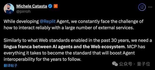 首批合作伙伴、AI编程工具Replit总裁盛赞,MCP将成为AI Agent与互联网生态之间的通用语言。