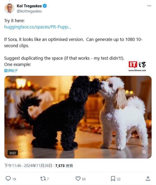 IT之家 11 月 27 日消息,科技媒体 TechCrunch 昨日(11 月 26 日)发布博文,报道称名为“Sora PR Puppets”的组织为抗议 OpenAI 的“欺骗行为”和“艺术洗白”,于本周二在 Hugging Face 平台泄露了对 OpenAI 视频生成模型 Sora 的访问权限。