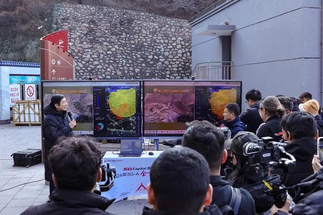 在长城景区,北京延庆区政府与北京联通密切合作,大规模部署了5G-A万兆基站。通过超大规模天线阵列、鱼鳞干扰控制及天地智能协同等技术创新,实现了对地面和300米以下低空的连片覆盖,在地面的记者也是首次与在直升机上的工作人员通过5G-A网络打通了网络视频会议,全程画面流畅,这一演示成果意味着从此北京联通可以为长城景区的低空旅游、低空物流、低空应急救援、景区保护等场景提供了高可靠、高质量的网络支持。