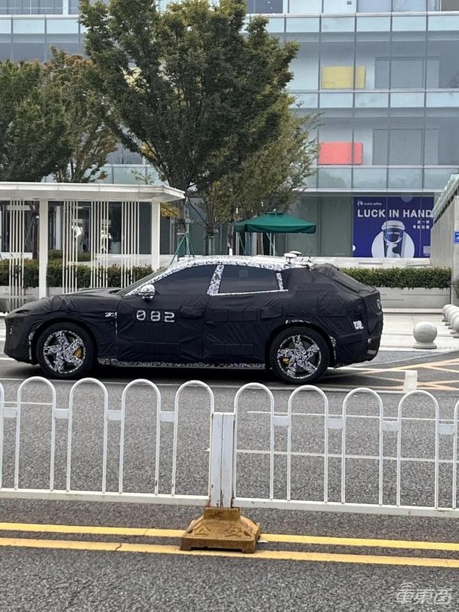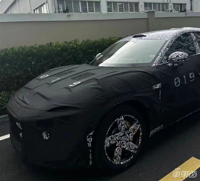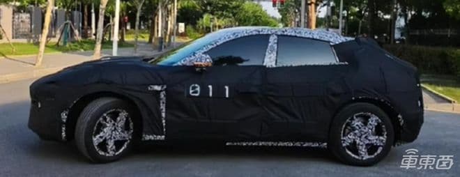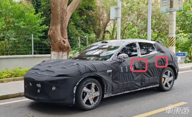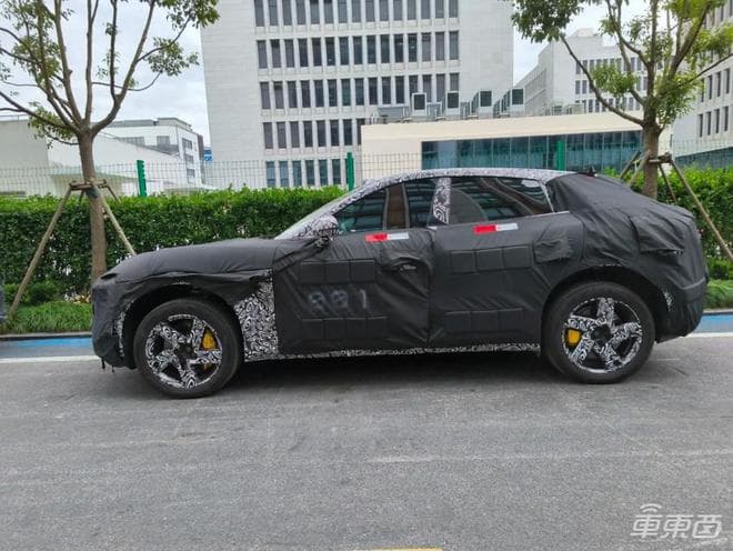 同时,从侧面看可以看出小米SUV伪装车类似法拉利Purosangue的车身曲线。