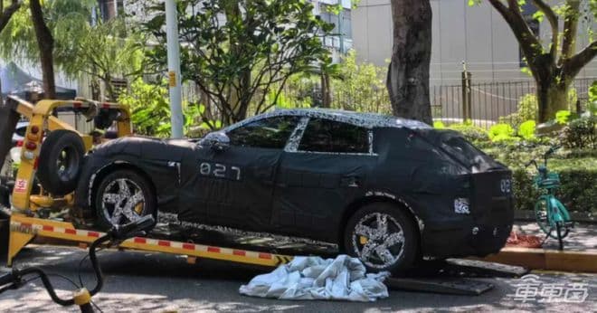 7月17日,网络上出现了027号小米SUV伪装车车上板车的谍照,可以大致看出车身长度应该还是比较长的。