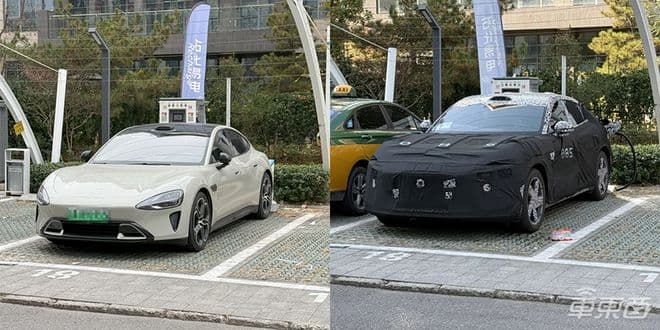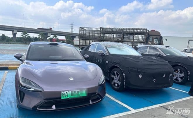 此外,从这组谍照的另一个角度可以看到,220号伪装车是没有车顶激光雷达的,但068号是有激光雷达的,同时与停在旁边的小米SU7对比来看,伪装车的车长似乎还要短一些,当然不排除伪装车停的更靠后。