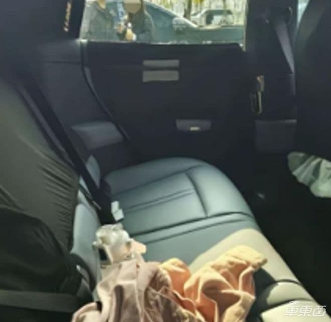 来到侧面,根据伪装车后车门的门把手遮盖位置 、以及前排开门后看到的B柱没有明显的对开门结构,同时还有开后门的165号伪装车的情况来看,小米SUV应该不会采用对开门设计。