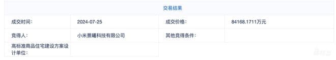 2024年7月25日,小米汽车在亦庄新城YZ00-0606区域的0106地块工业项目使用权竞标中,以8.42亿元人民币的价格成功中标。