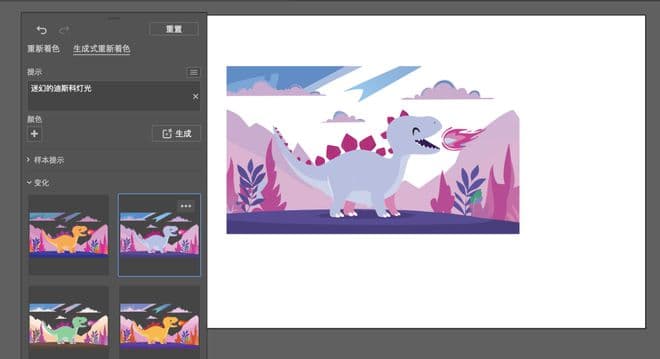 比如在 Adobe Illustrator 还可以一键给你的矢量图,换一套配色和颜色。