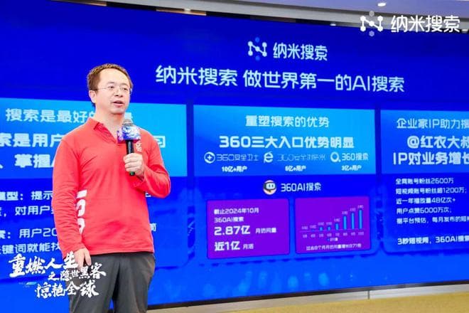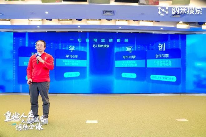 做AI搜索不到一年,就收获国内PC端最大的AI应用,访问量比第2名到第20名的总和还要高;视频里不到3秒的产品口播,就为App带来数万下载,直接商业价值数百万元;为了给纳米搜索做推广,老周躬身入局自编自演了他的首部短剧,产品还没发布就获得了巨大的关注,上线首日访问量百万。