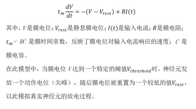 LIF模型,即泄漏整合发放模型(Leaky Integrate-and-Fire model),是神经科学中一个常用的简化神经元动作电位的数学模型。该模型侧重于描述膜电位[4-5]随时间的变化情况,而忽略生物神经元内部的复杂离子动态。