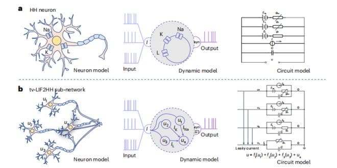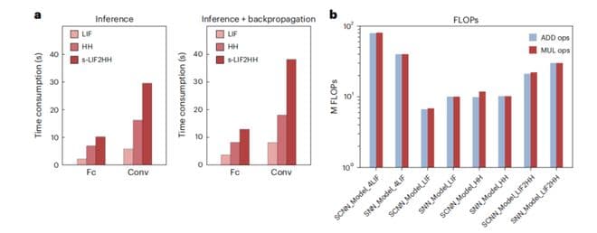 在此基础上,他们通过实验验证了HH网络在处理复杂任务时的有效性和可靠性,并发现与简化的tv-LIF网络(s-LIF2HH网络)相比,HH网络的计算效率显著更高。这证明了将外部复杂性转化为内部复杂性,可以提高深度学习模型的计算效率;也提示,受生物神经元复杂动态启发的内部复杂性小模型方法,有希望实现更强大和更高效的AI系统。