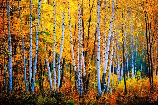 在一片五彩斑斓中被称为“林中少女”的白桦风华独具,