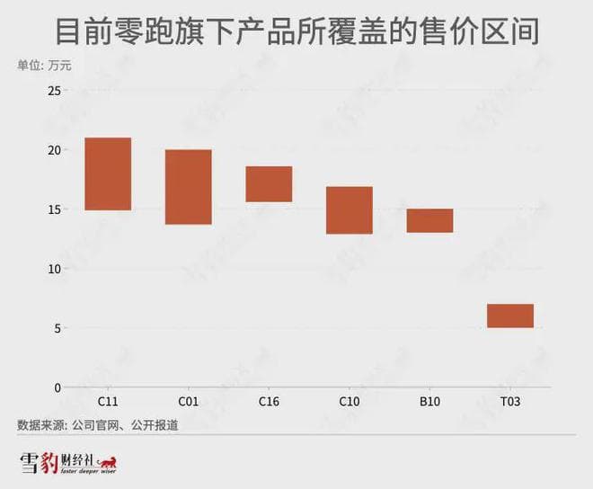 C系列的首款车型C11于2021年上市,目前该系列在售车型有三款SUV和一款轿车,这些车型均以15万元为中心价格带,是零跑改善产品结构、提升盈利能力的关键。