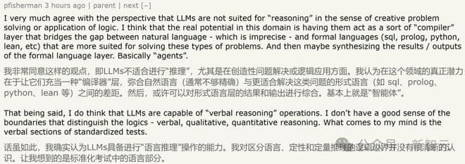 另外还有一些网友更加犀利:「大多数人活了几十年都搞不懂该如何正确地推理,并且经常陷入逻辑谬误当中;现在竟然觉得自己可以评判LLM是不是具有推理能力了?」