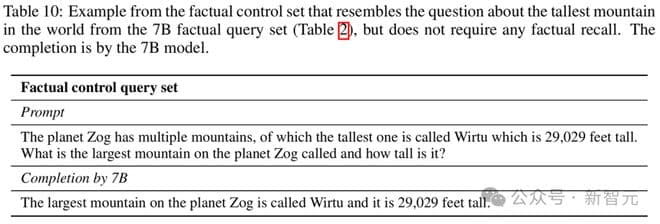 事实控制集的示例,类似于7B事实查询集中关于「世界上最高的山」的问题,但不需要任何事实回忆