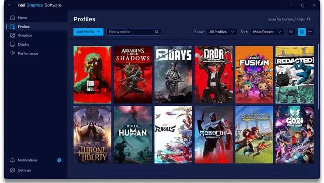 新版“英特尔图形软件”提供了无缝优化功能,用户无需反复调整设置,可以为每个应用程序设置配置文件。