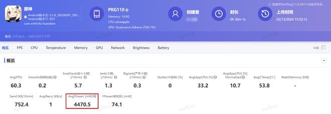 游戏平均功耗也只有 4.4W,相比骁龙 8 Gen3 首发机型的 5.7W 低了 1.2W。