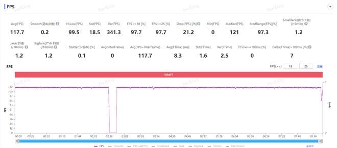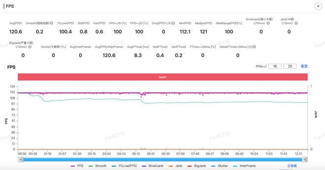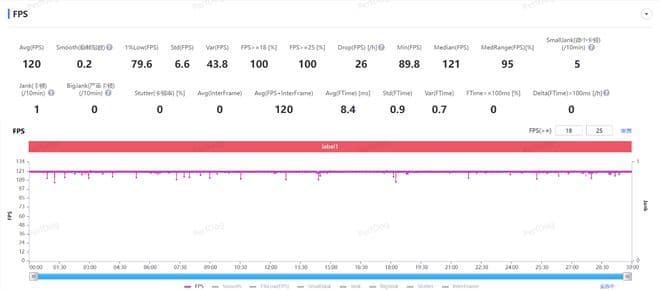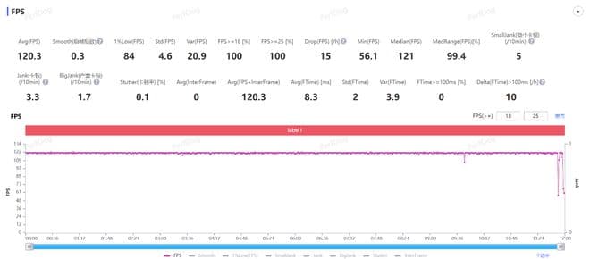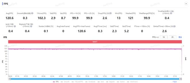 去除一局超短时间对局,其余 5 局的游戏平均帧数基本都是 120 帧,表现非常稳定。