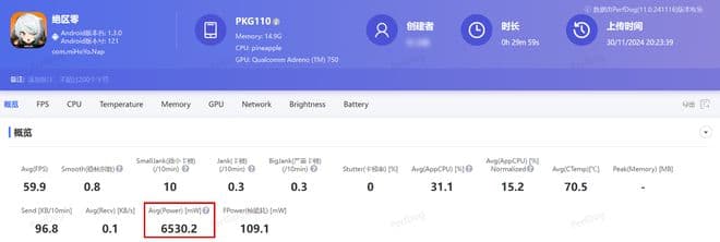 游戏平均功耗则达到了 6.5W,在所有参测游戏中也是最高的。