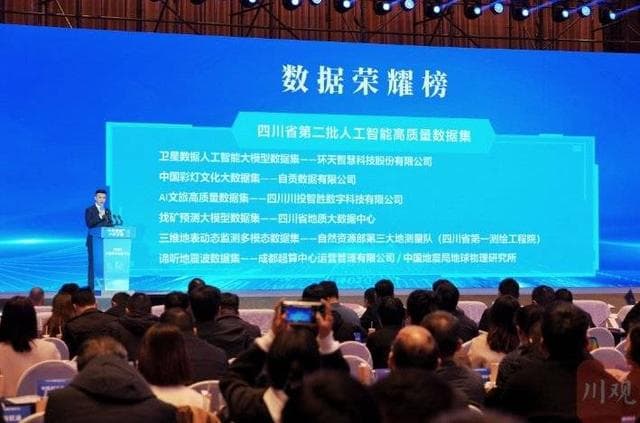 大会公布了四川第二批6个人工智能高质量数据集,既有谛听地震波数据集,还有卫星数据人工智能大模型数据集、中国彩灯文化大数据集、AI文旅高质量数据集、找矿预测大模型数据集、三维地表动态监测多模态数据集。