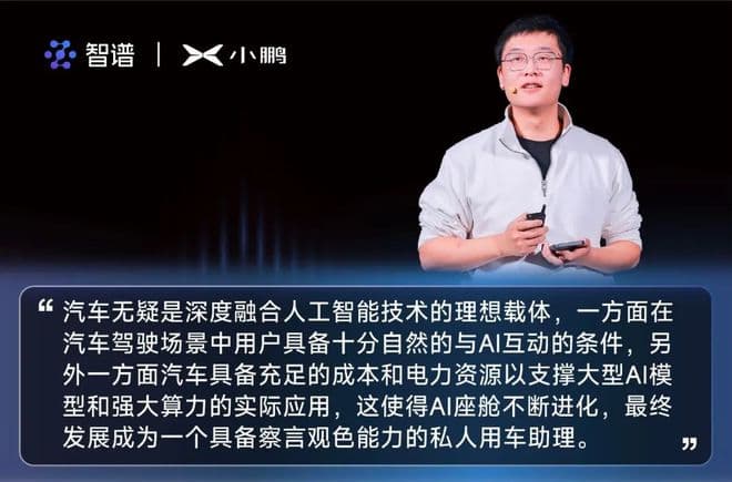 小鹏汽车希望,通过坚定的自研重度投入(自研车载大模型、自研芯片)以及与智谱等生态伙伴的共赢共建,在 AI 互联的时代构建 AI 生态朋友圈。