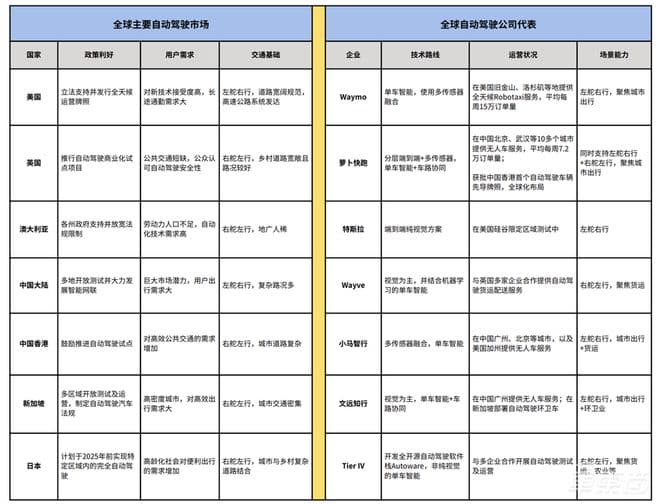 ▲主流市场自动驾驶政策及公司对比