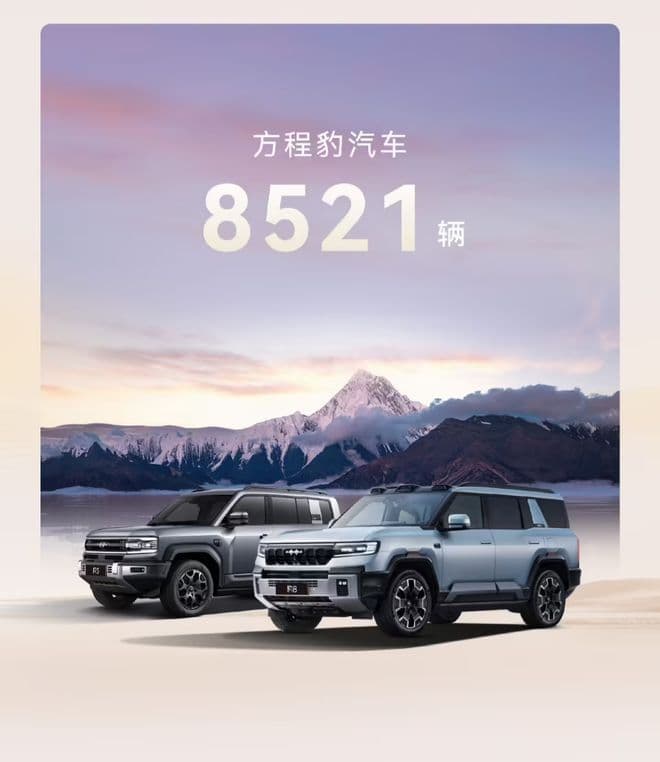 豹 5:当月销量 6,058 辆,年度累计 42,507 辆豹 8:当月销量 2,463 辆,年度累计 2,463 辆