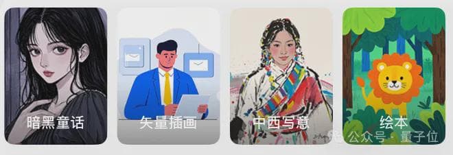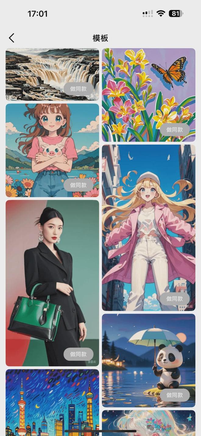 而且,豆包AI生图模块一直非常贴心,如果你觉得从0开始想象一张图比较困难,它们还内置了很多风格和模版,你可以在它们的基础上做点修改:
